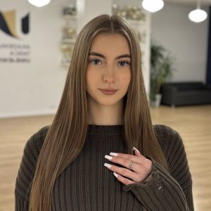 Karina Berehova – taniec towarzyszy jej od najmłodszych lat. Kariera Kariny rozpoczęła się już w wieku 3 lat, a od tego czasu zdobyła wiele nagród na zawodach tanecznych. Karina kocha wszystkie style tańca, jednak jej największą pasją są tańce towarzyskie. Jest szczęśliwa, gdy może tańczyć oraz uczyć innych, dzieląc się swoją pasją i doświadczeniem. Z łatwością nawiązuje kontakt z każdym, niezależnie od wieku czy poziomu zaawansowania, tworząc atmosferę wsparcia, zaufania i radości z ruchu. Karina nie tylko uczy techniki, ale również rozwija w swoich podopiecznych pewność siebie, kreatywność i poczucie rytmu.